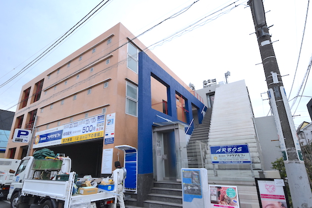 青色の柵に目を惹かれるこちらの物件の3階がご紹介するお部屋です。撮影時はちょうど工事中でしたが、1階スペースにコインパーキングができるようで、来客が多い方には嬉しいポイント。