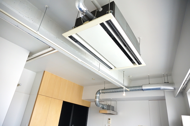 空調設備が付いている天井にはライティングレールも付随しているので、お好みの照明でお部屋を彩っていただければと思います。