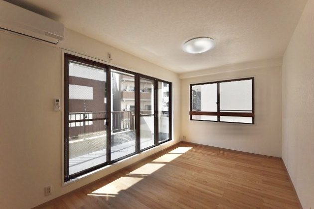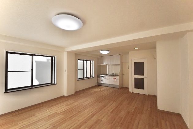 室内はフルリノべージョンが施され、シンプルで温かみのある空間に生まれ変わりました。ライトブラウンの無垢フローリングに白を基調とした明るいお部屋です。
