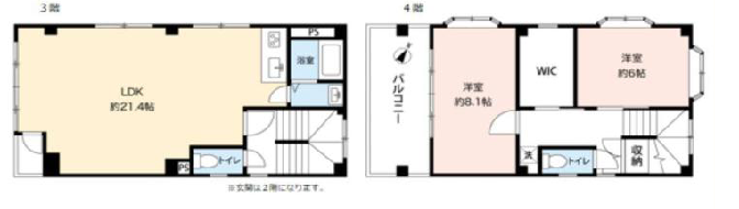 80㎡を超える2LDKのメゾネットタイプは、住居兼事務所としても利用しやすい間取り。