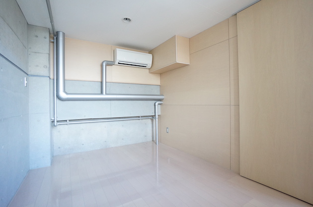 デザイナーズマンションというと収納が少ないのがネックになるのですが、大型の棚が備え付けであるのは嬉しいポイントです。