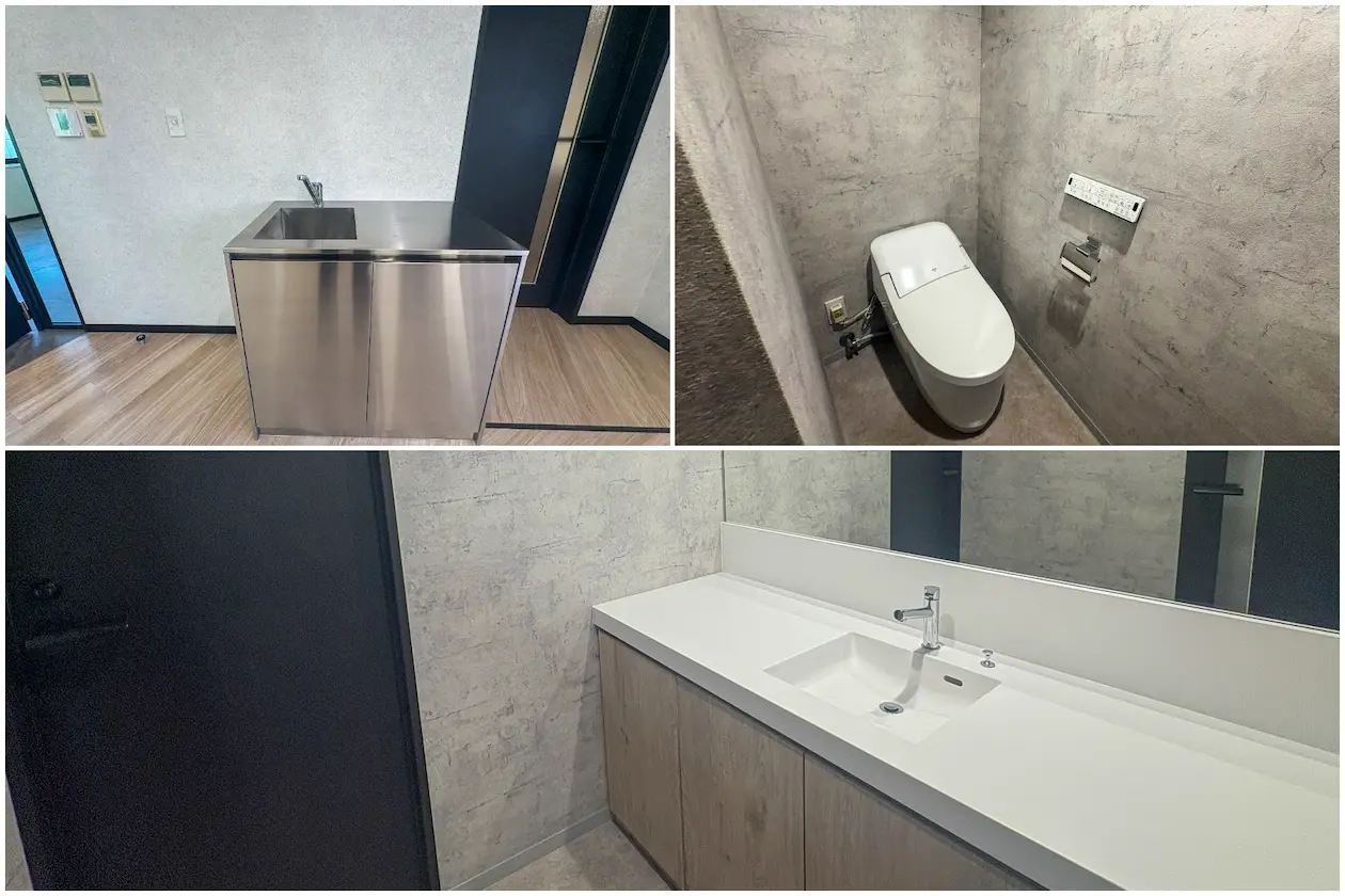 男女で分けて使用できる2つのトイレの執務室の方には、広さのあるパウダールームも完備。