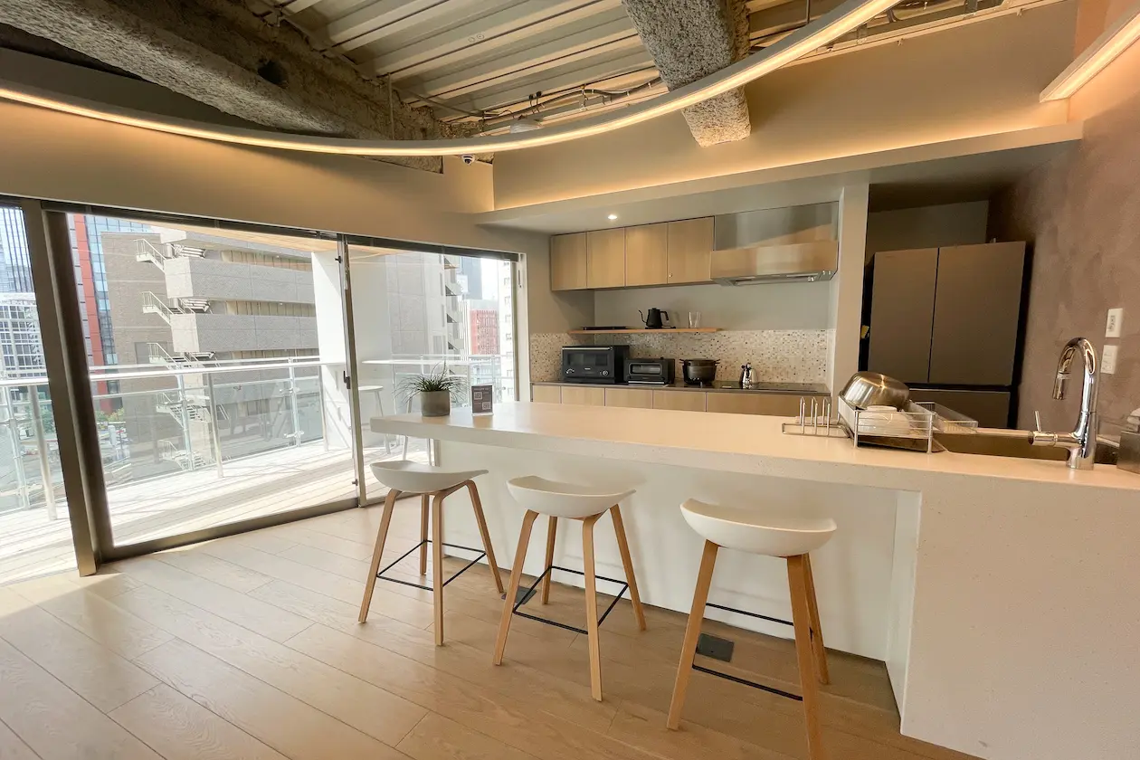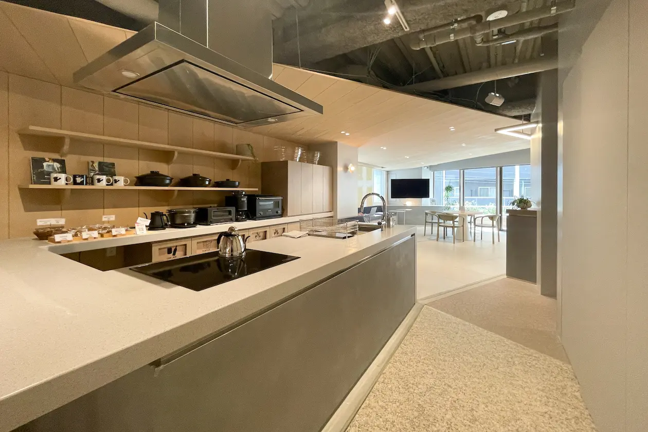 LDKと呼ばれるスペースにはキッチン設備が完備。ランチを食べたりくつろぎスペースとして多目的に利用ができます。