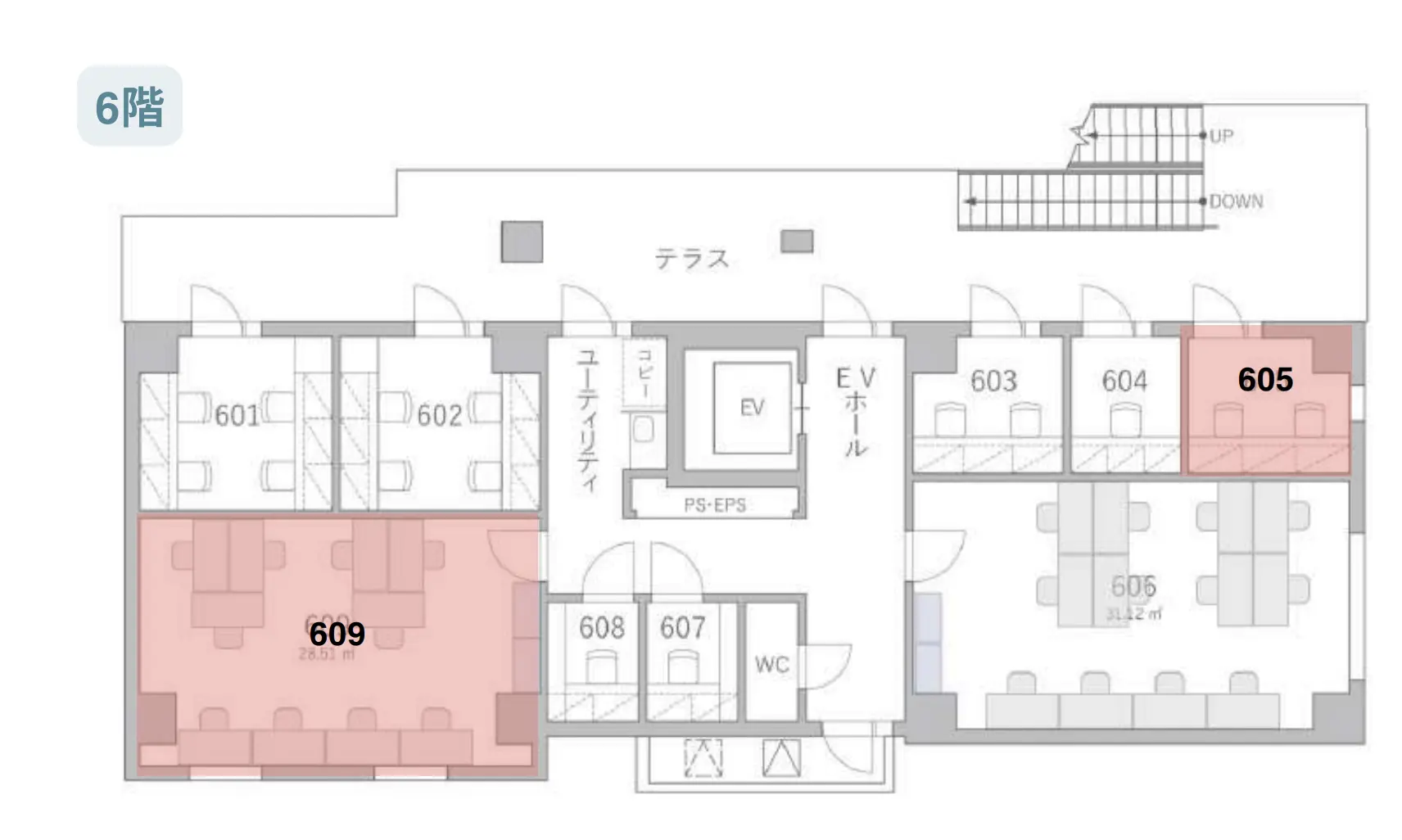 こちらは家具(デスク、チェア、ロッカー等)が付属されているため入居後すぐに業務に取り掛かることが可能です。