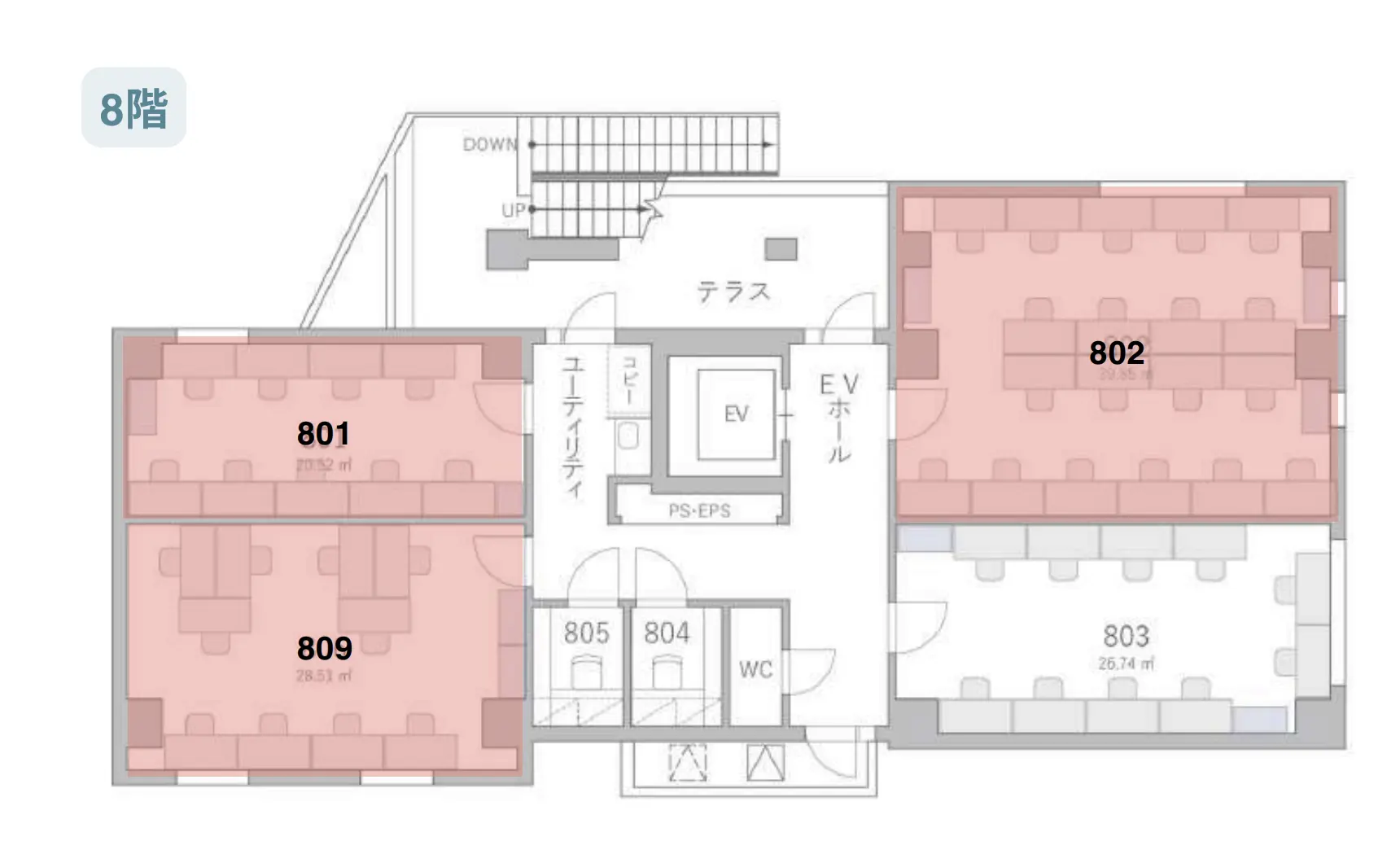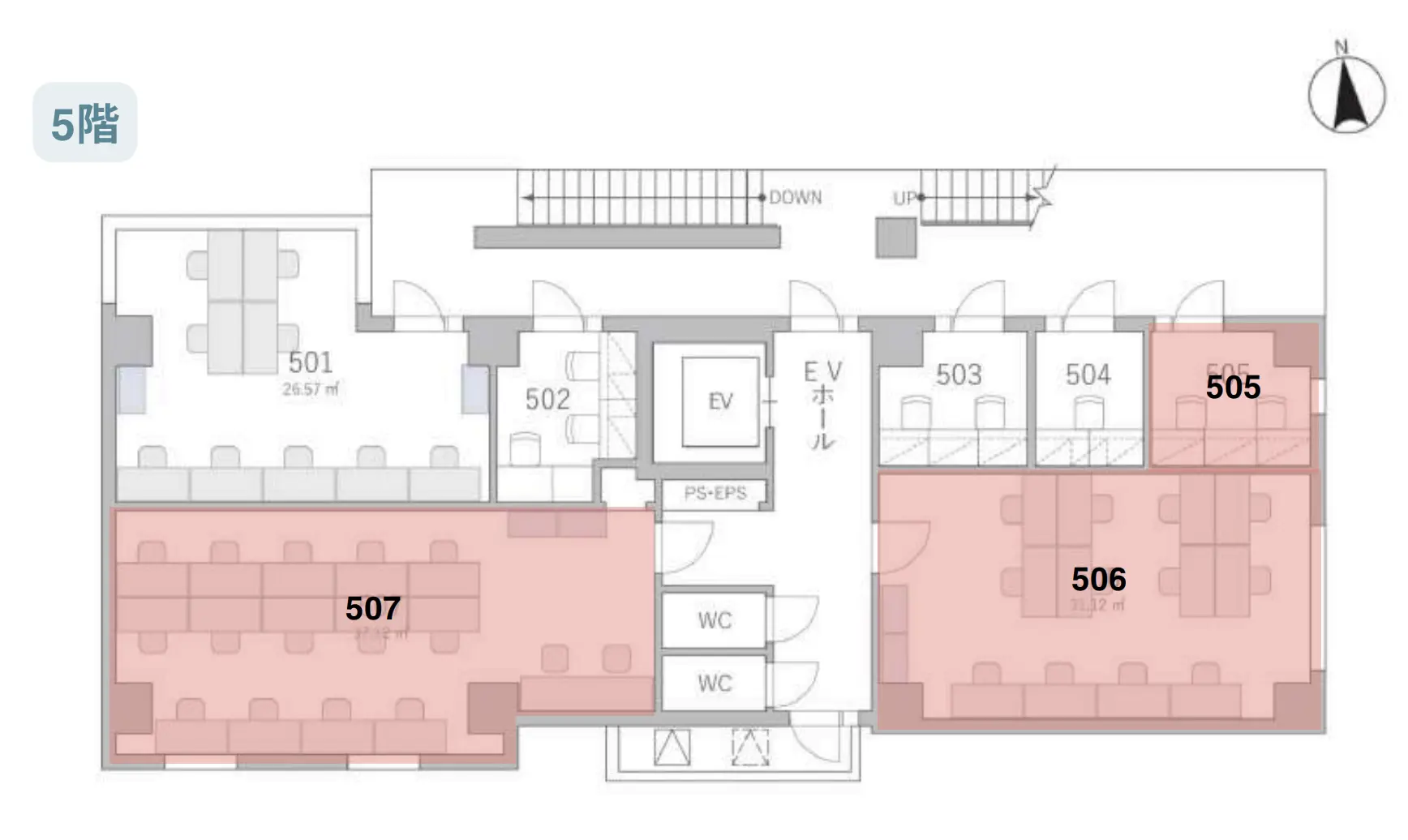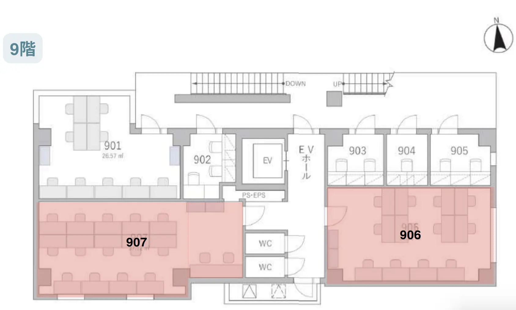 【Private Office】約10〜40㎡、5席〜19席の完全個室Officeが29区画ございます。