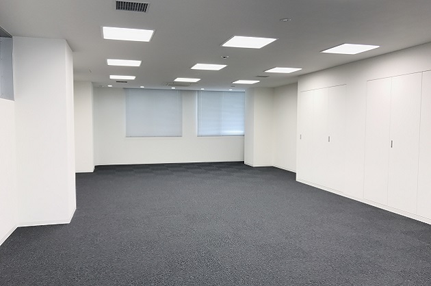 ワンフロアの室内の広さは約43坪。オフィス仕様のOAフロアで使い勝手が良さそうです。