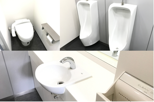 共有部に給湯室と男女別お手洗いは設置済み。