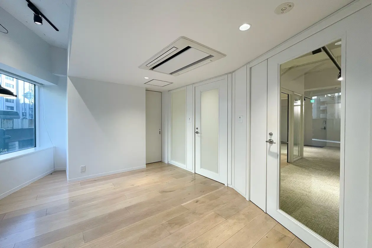 こちらは3Fのオフィス入り口部分です。白と木目で統一されており、明るく解放的です。
