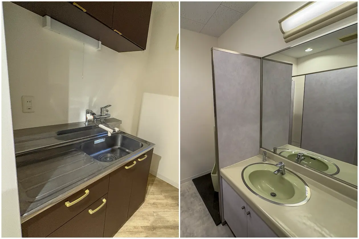 キッチンはコンパクトながら使い勝手に配慮されたシンクまわりで、日々のドリンク準備や簡単な作業に十分対応できる仕様です。