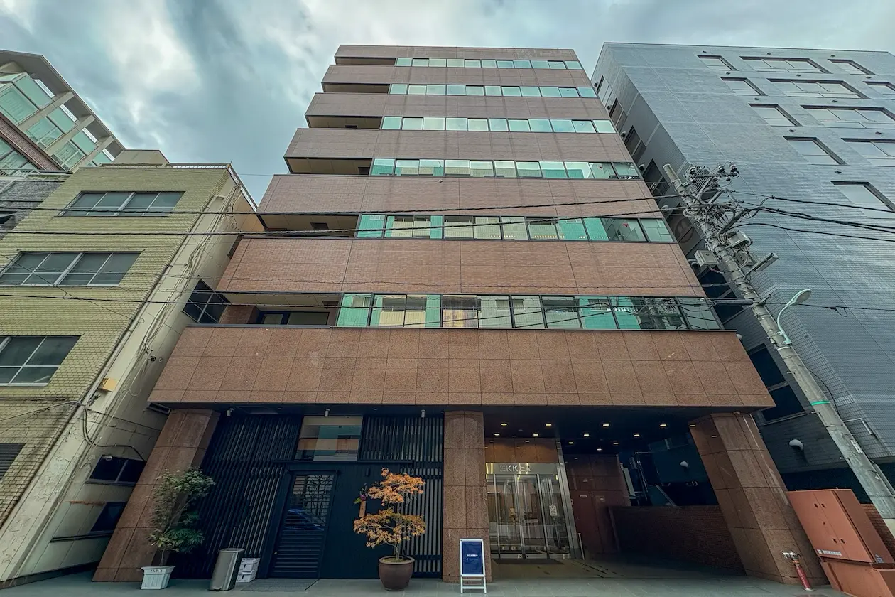 外観はブラウンタイルを基調とした重厚感のあるファサードが特徴で、ビジネス街にふさわしい端正な佇まいを見せます。