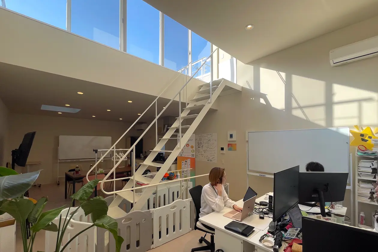 階段部分にはベビーサークルを設置しており、お子さま連れでの出勤や訪問にも配慮されたキッズフレンドリーな空間に。