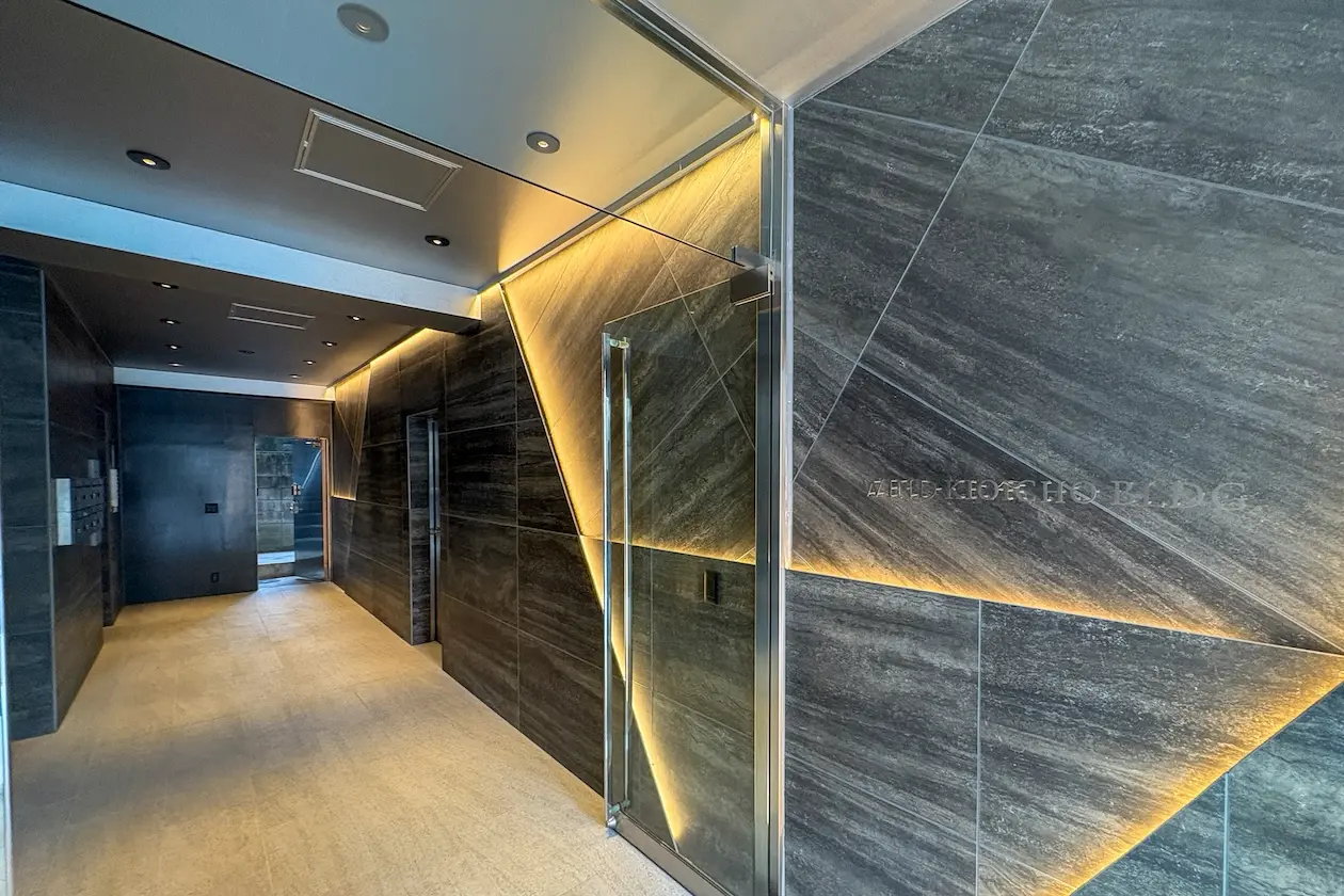 室内の入り口には1階のエントランスと同じような間接ライトアップが。