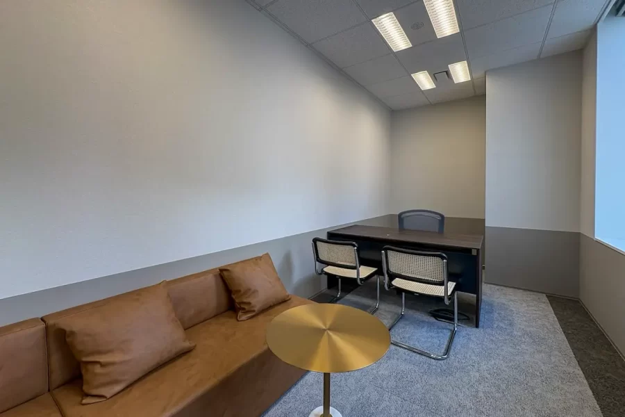 テレカンブースが4室・6名~12名対応の会議室が4室、さらに役員室まで設置済みの豪華仕様となる。