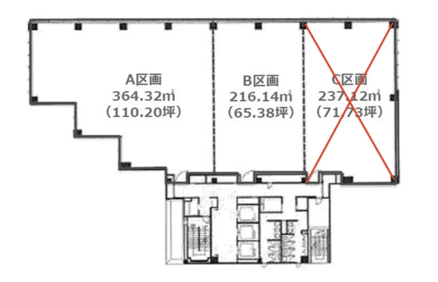 この大型区画でも敷金ゼロが選択可能という所、内装費用の圧縮が可能という点にバリューを感じることができる企業というところが前提条件となるだろう。