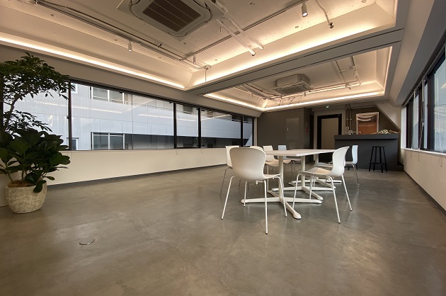 モルタルの床が無機質な印象を与え、すっきりとしたオフィスデザインを叶えます。