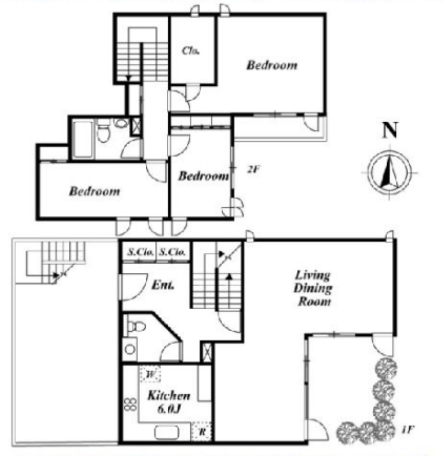1+2階と2+3階の2部屋のみというほぼ戸建てと言って差し支えない構成。