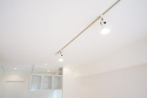 部屋のアクセントにライティングレールが取り付けられています。