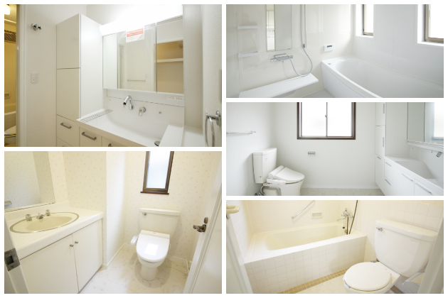 その他水回り。写真左下のトイレは1階に、そのほかは2階に位置。