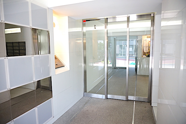 スチールと白の部材でまとめられたエントランスはホテルライクな印象を与えます。