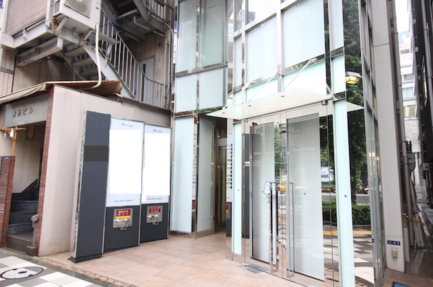 メインのエントランス部分がこちら。鍛冶橋通り沿い、宝町駅の出口側にあります。