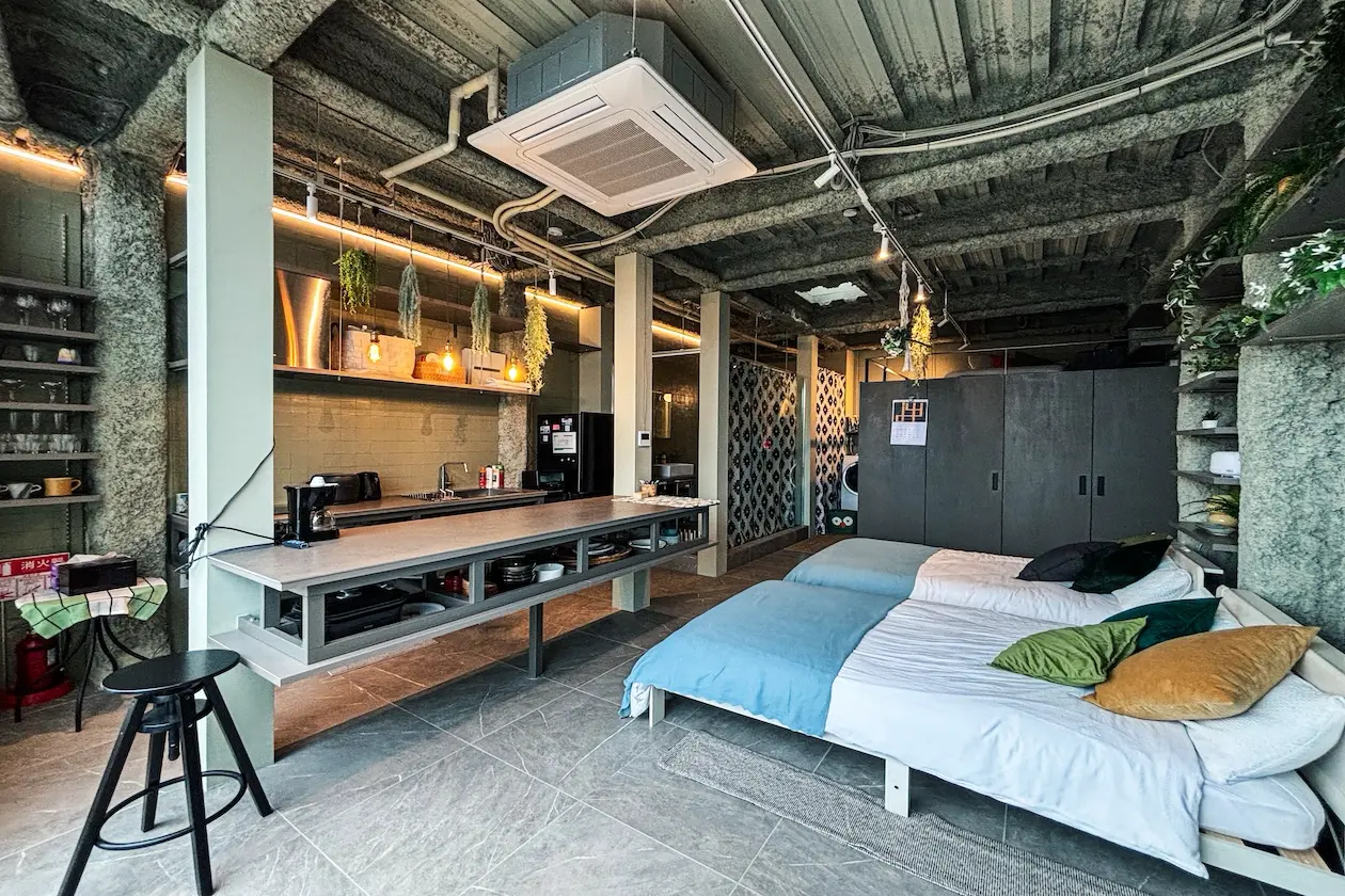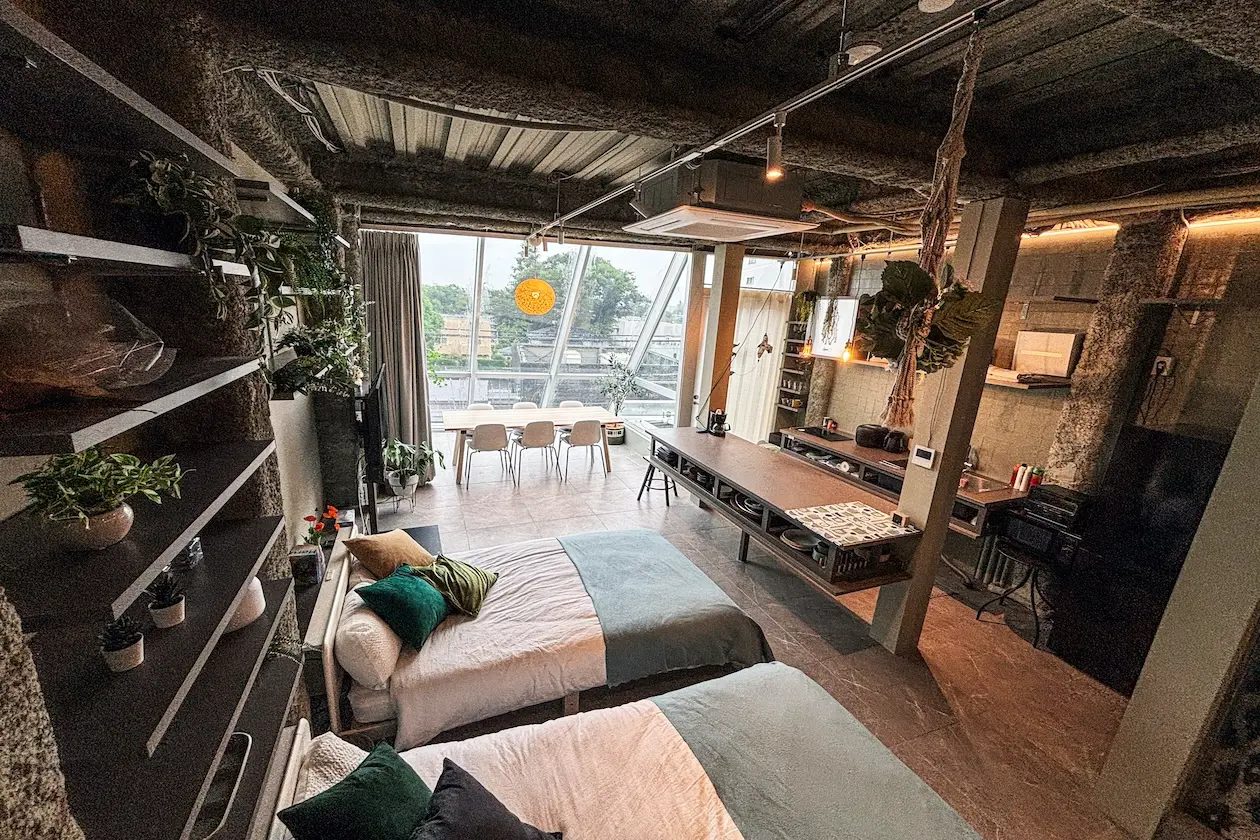 まるでNYCブルックリン街の一室を思わせるようなコンセプト。部屋に入った瞬間、私は自由と希望を求めて渡米したアメリカンドリーム日本男児になってしまったのかと錯覚をしてしまいました。