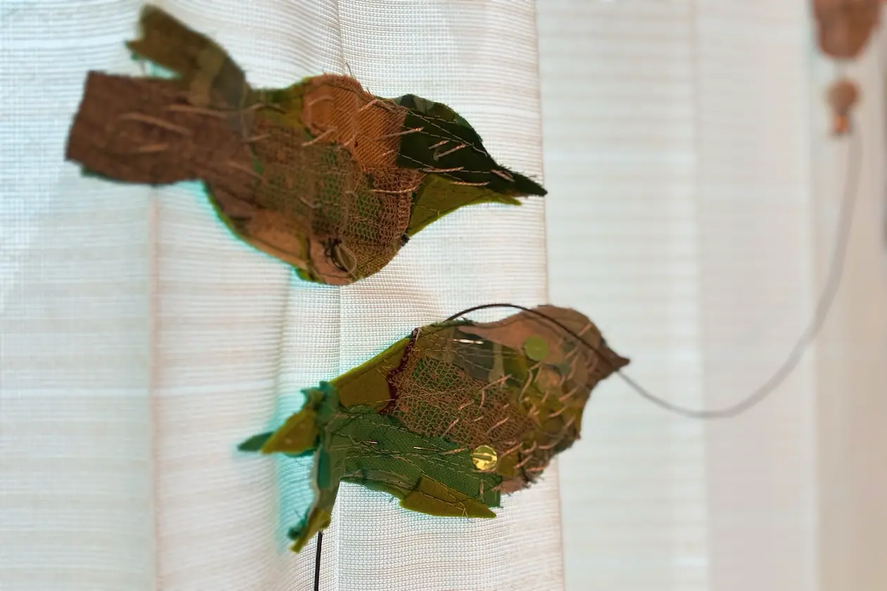*401号室に宿泊したアーティストであるアンドレア・マイヤーズ氏が宿泊のお礼に作っていただいたという鳥の作品。現在、大阪万博のアメリカ館にて作品が寄贈されている著名なアーティスト。