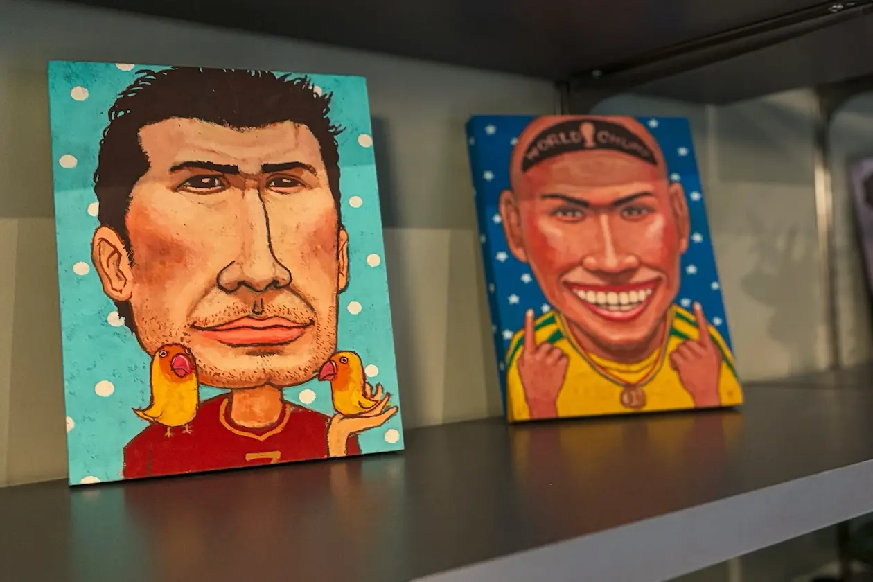 *サッカー好きの平元さんが元々自宅で飾っていたアート。知っている方はよだれものでしょう。そうです。フィーゴとロナウド(大五郎カットver)です。