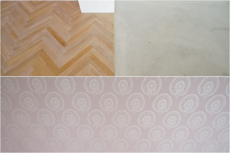 右:フローリングとモルタルの比較です。