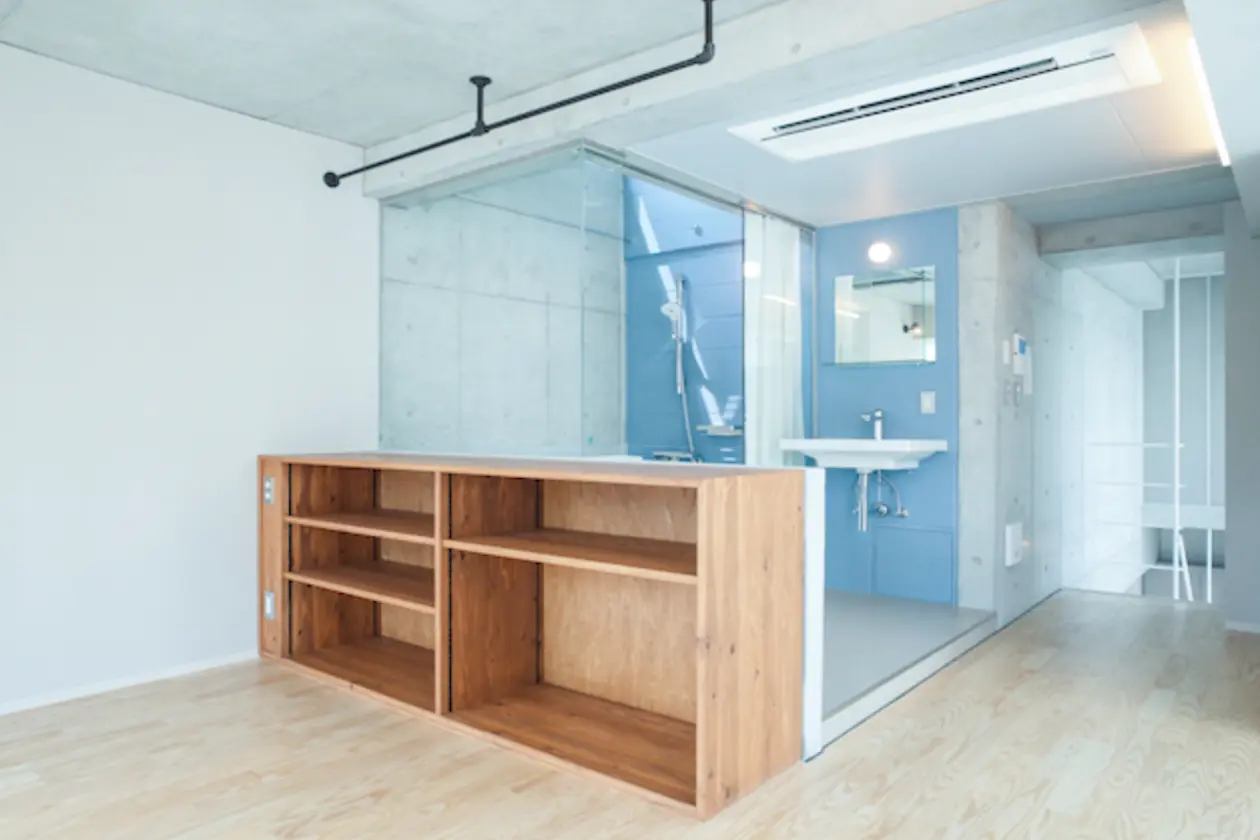 特に浴槽の扉がガラス張りになっているのはいかにもデザイナーズ物件という雰囲気が漂います。