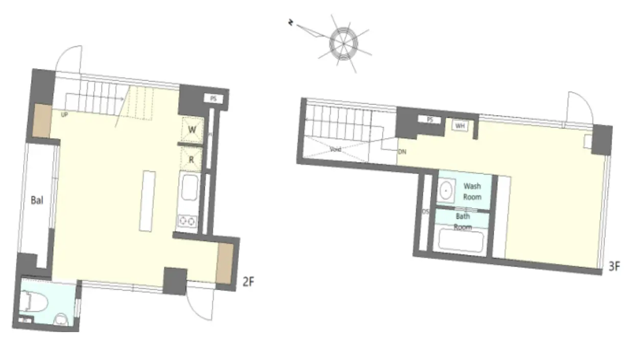 コンパクトなメゾネットプランは住居兼事務所や少人数での事務所利用に適しています。