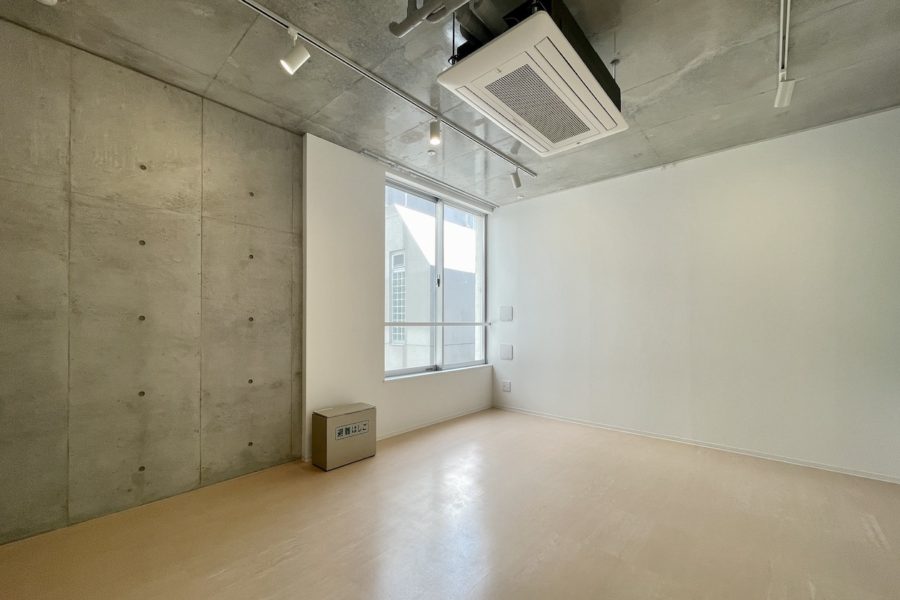 床はフローリング、壁は白塗装、天井と一部壁は打放しのコンクリートという内装デザイン。