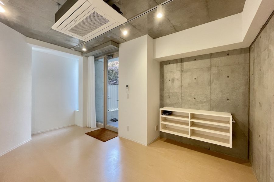 コンクリートの量感とやわらかさを感じるデザインの1LDK新築デザイナーズ