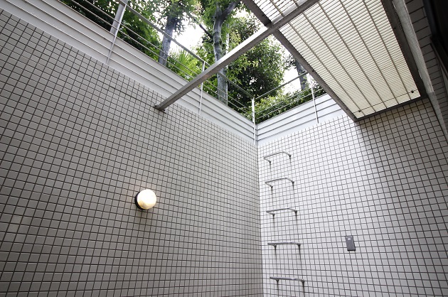 吹き抜けはタイル張りというこだわりよう。解放感があり、気持ちの良い陽射しと緑が楽しめます。仕事合間にこちらのスペースでリフレッシュされてはいかがでしょうか。
