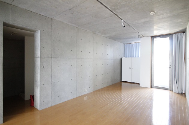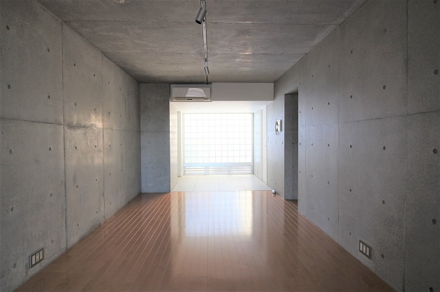室内も外観同様、コンクリートの打ちっ放しが印象的。窓はハイサッシで開口部が広いので、採光性・開放感・良眺望に加え、お部屋をより広く見せてくれるという利点があります。3名前後でのご利用におすすめ。
