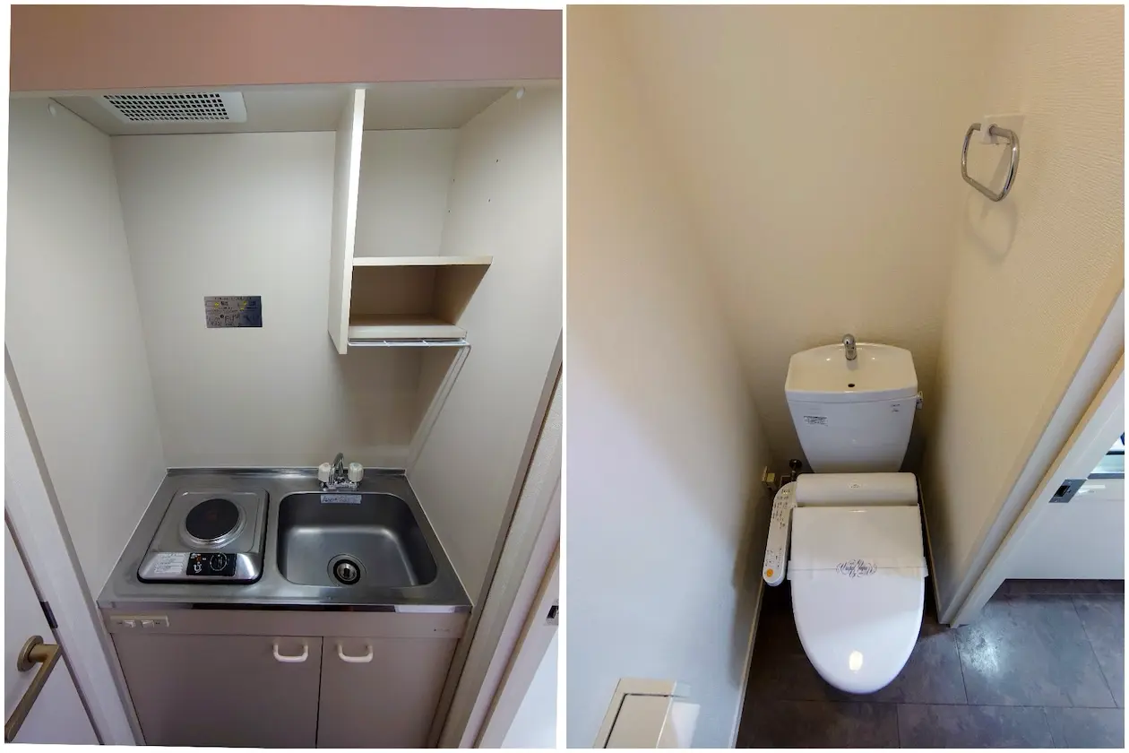 ミニキッチンとトイレをコンパクトに集約。