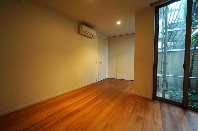 こちらは1階にある約8帖ほどの洋室。窓からは明るい日差しとともに小さな庭が覗けます。