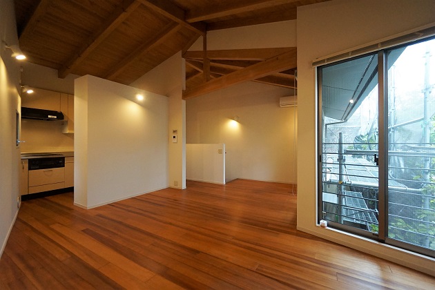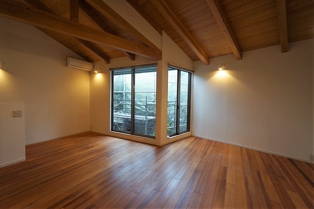 無垢素材の床と木材の暖かみある天井が解放感と過ごしやすさを感じさせます。