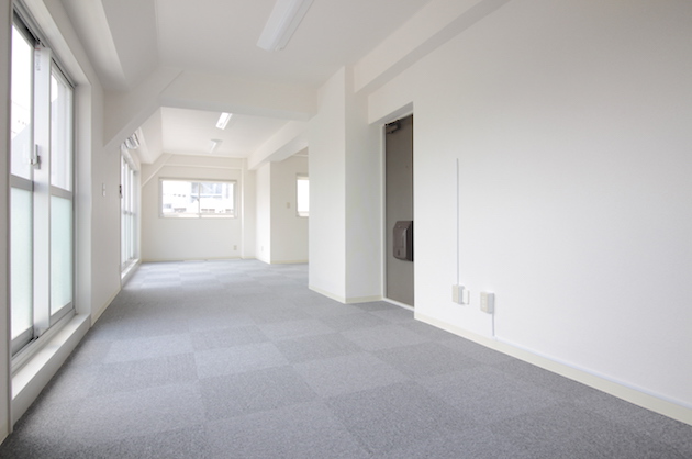 執務スペースと考えると、10名程度は十分に収まりそうなスペースです。各面に窓があるのはワンフロアの特権。室内は非常に明るいです。