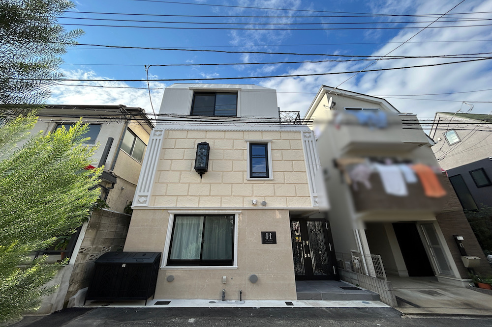 ベージュのタイル使いが特徴的なヨーロッパ調の印象的なファサード。