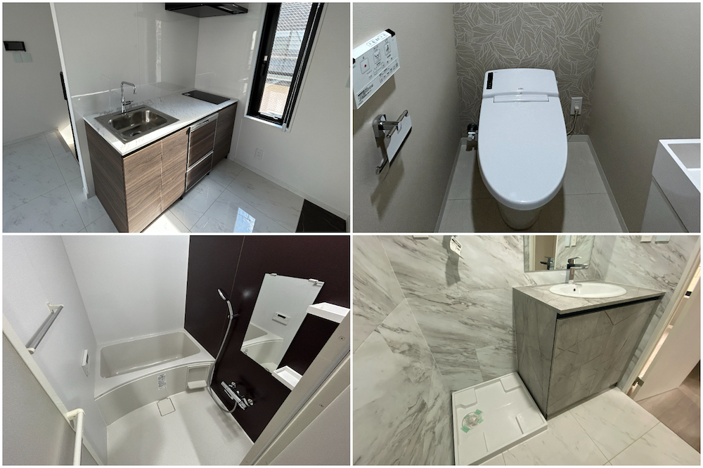大理石調のタイルやアクセントクロスもありますが基本的には白・黒・グレーで構成されたシックなデザイン。