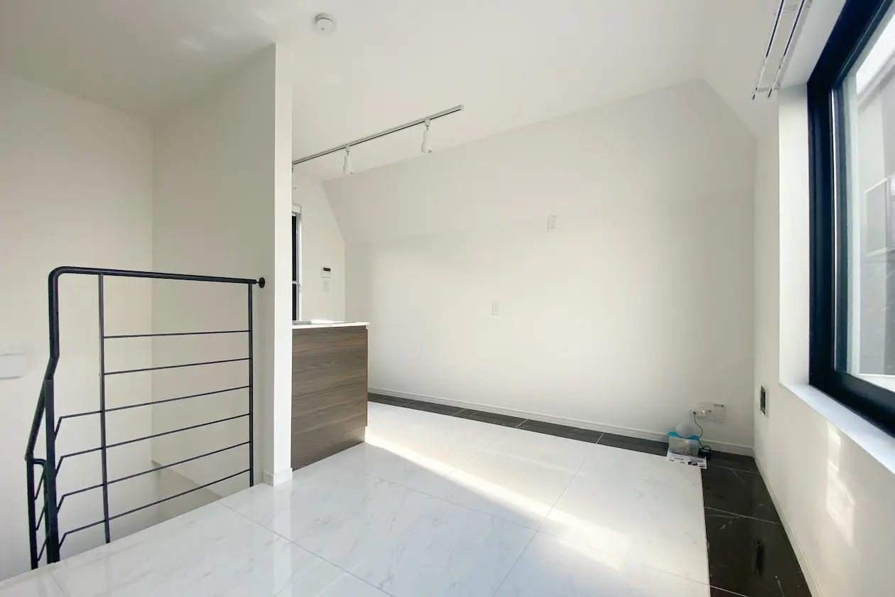 床は大理石調の白いタイル使い、窓も大きく開放的に感じられると思います。