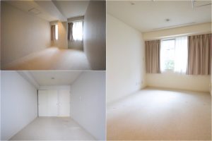 こちらはメインの洋室、洋室は全て絨毯仕様で作りはどれもシンプルなものになっています。