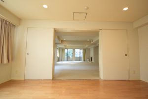 十分な奥行きを感じることができますし、部屋を分けたい場合は左右の扉を締めることでしっかりと居住空間を確保できます。