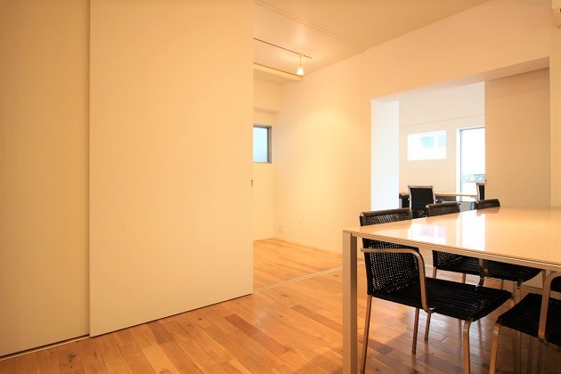 ちなみに、水回り、ミーティングスペース、ワーキングスペースはスライドドアで仕切ることもできます。