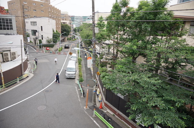 当物件から見下ろすアイビー通り。静かながらも人の往来も多く、緑も視界に入ってきて爽やかな気分にさせてくれます。