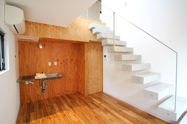 室内は約7帖のダイニングキッチンと、階段を上がった7.5帖のベッドルームのメゾネットタイプ。