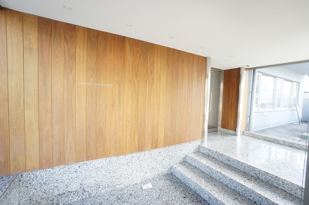 エントランスもリノベーション済み。上質かつ木材の柔らかさを感じるバランスの良い雰囲気。