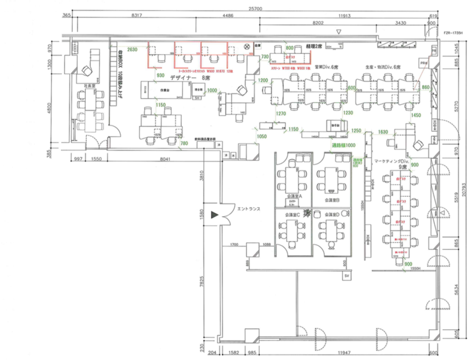 35名程度の執務室に社長室、4つの会議室とショールームがございます。