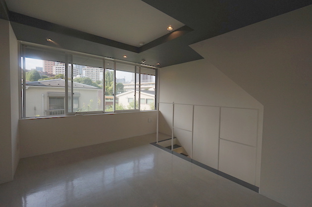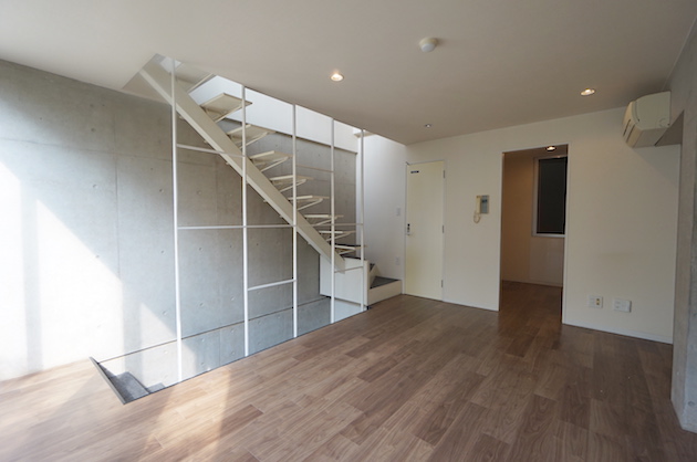 この物件は2階から地下1階までのお部屋のトリプレットとなっております。こちらは2階部分。玄関との境目がなく、広々と空間を活用できます。