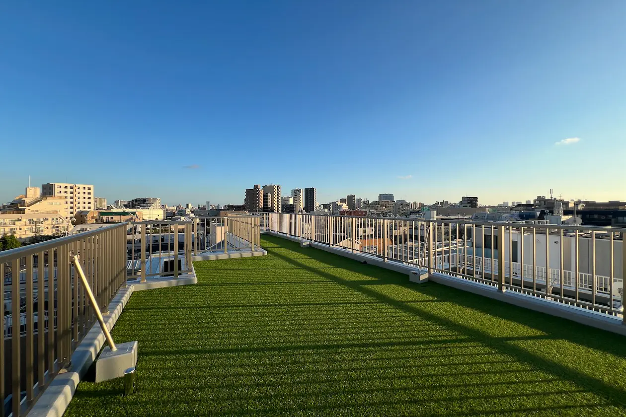 ルーフバルコニーからは、街並みを一望することができるプレミアムな区画。ハンモックやチェア・デスクなどを置くことでちょっとしたリフレッシュ空間になりそうです。